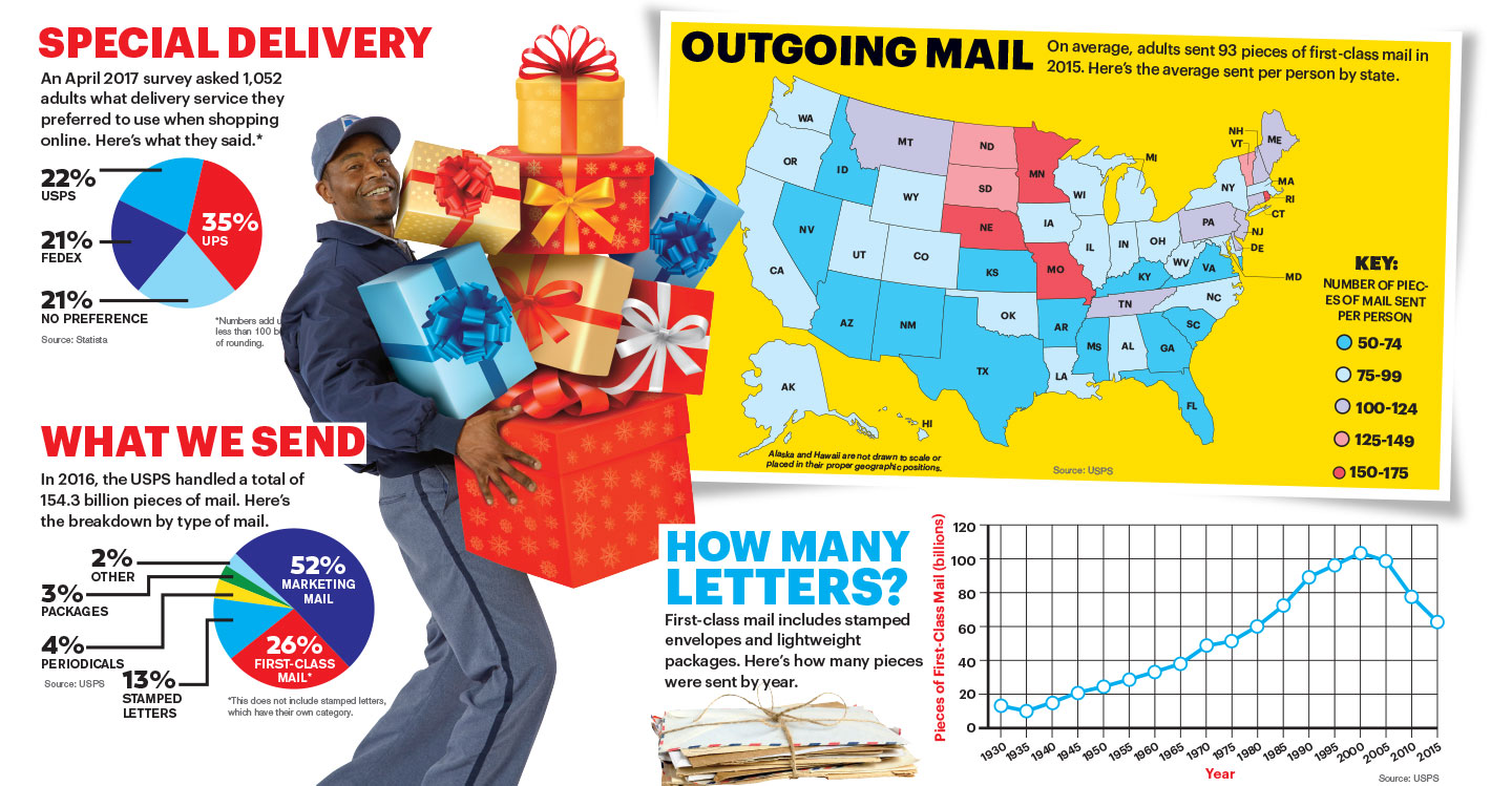 Postal companies take center stage during the holiday season. Workers at UPS, FedEx, and the United States Postal Service (USPS) are hard at work moving holiday cards, presents, and all-important letters to Santa around the country—and the world.