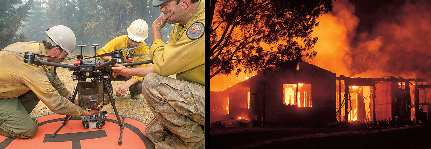 As firefighters worked to control the blaze, they used a new tool to help. They flew drones, or remotely operated flying vehicles, over the fire. A team of firefighters, police, rescue workers, and private companies used the drones to take more than 70,000 photos of the burned areas. Then they combined all this data to map the damage.