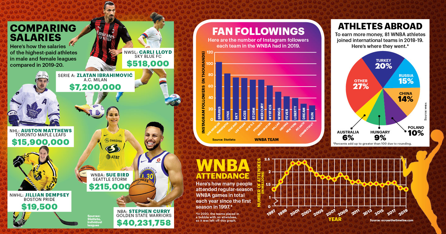 This year marks the 25th season of the WNBA, the all-female basketball league. It follows a season that was unlike any other. In 2020, the Covid-19 pandemic prevented the league’s 12 teams from traveling or playing in front of fans. Instead, the entire WNBA relocated to Florida, where athletes were quarantined and tested daily. Players had little contact with friends and family outside the league “bubble” all season.
