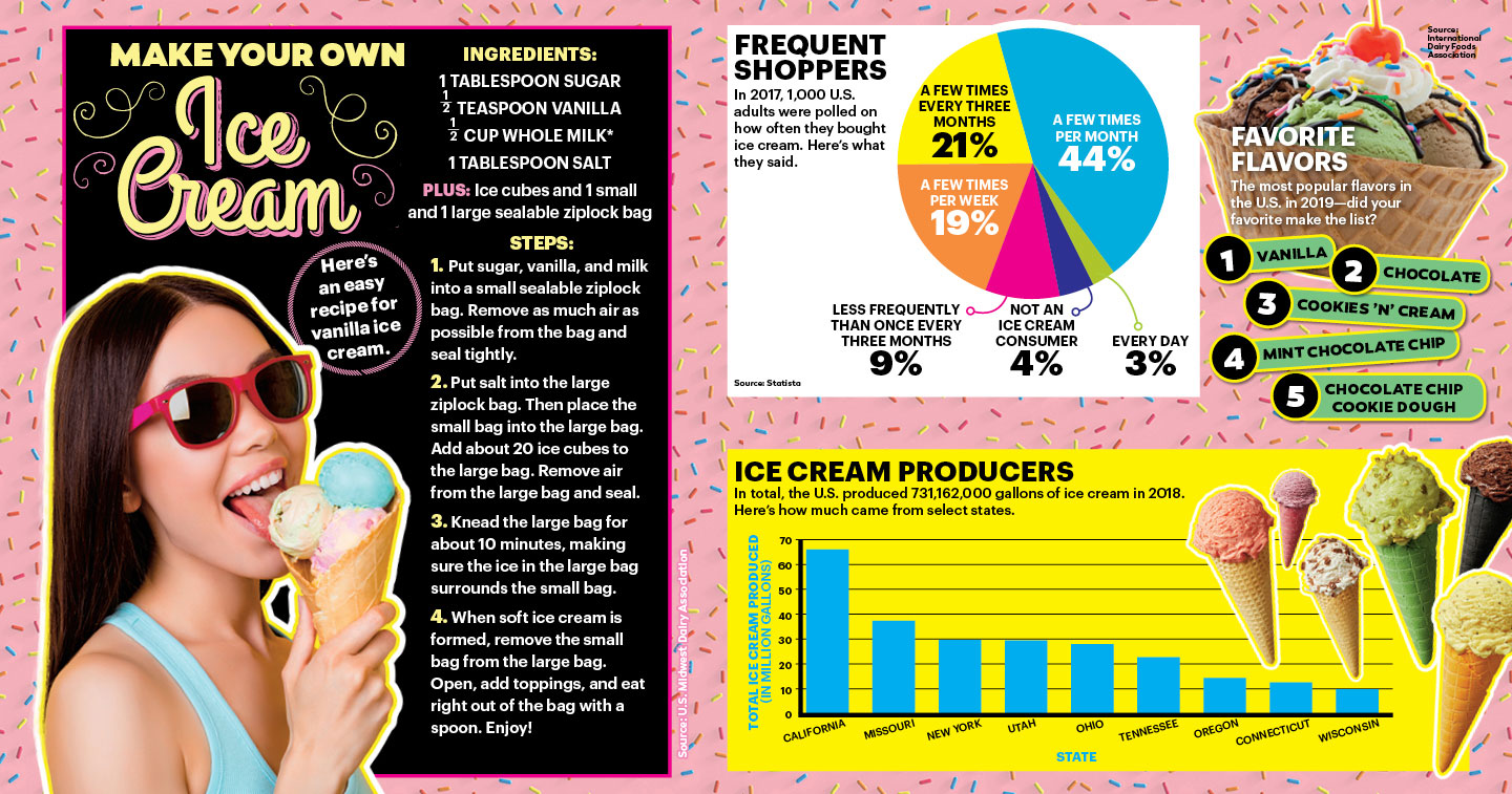 National Ice Cream Month isn’t until July, but the frozen treat is a popular dessert all year round. In fact, 87 percent of U.S. households have ice cream in their freezer at any given time. Between cartons in the kitchen and scoops from the shop, the average American eats about 23 pints of ice cream products each year.