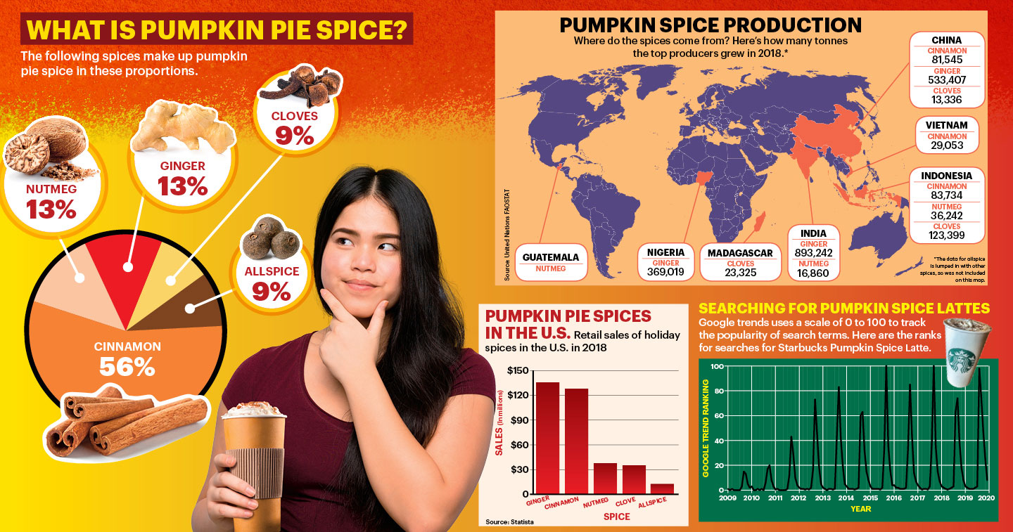 Love it or hate it, pumpkin spice-flavored products start flooding store shelves every fall. The iconic Starbucks latte was invented in 2003 and makes more than $500 million every year—but it doesn’t end there. Pumpkin spice is everywhere: in cookies, candles, household cleansers, and more. There’s even pumpkin-spiced SPAM! The number of pumpkin spice-flavored products has grown by more than 80 percent since 2011. But what makes the combination of cinnamon, ginger, nutmeg, allspice, and cloves so popular?