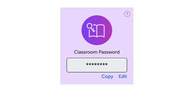 On the left, you’ll see a purple box labeled Classroom Password. You can edit the password that’s there if you choose, then share it with your students. This is the password they’ll use to log in to the site.