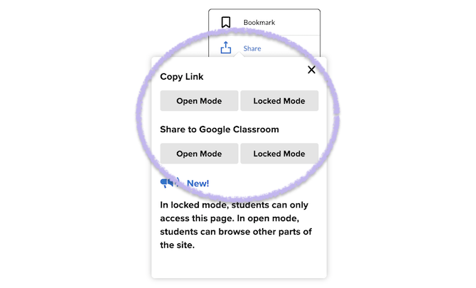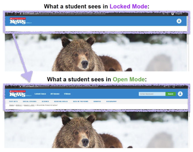 If you share a link to an article using Locked Mode, students can only view that specific article and are prevented from seeing the rest of the site. If you share a link to an article using Open Mode, students can easily navigate to other parts of the site.