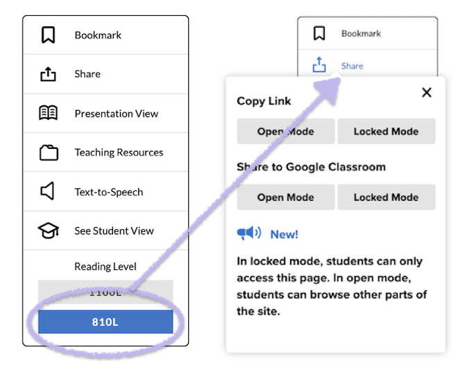 Bonus tip! If an article has multiple Lexile levels, you can assign a specific level to your students by clicking the button for the level first, then clicking the share icon and copying the link. Students can still toggle to different levels if they want, but this way they’ll be directed to the level you choose.