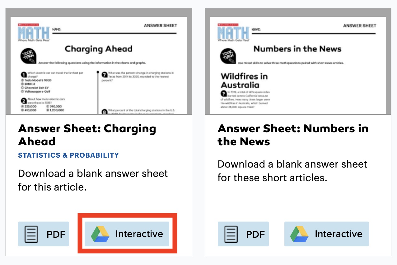 Copy our interactive Google Quizzes to your Google Drive account to view and even edit them in Google Forms, and assign the quiz to your students. Student responses will be sent back to your copy of the form in your Google Drive account.